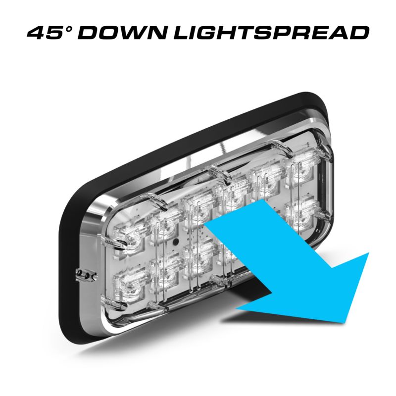 The Down Lux Series provides intense scene lighting in an ultra-compact design. The Down LUX features unique downward 50° spread, providing powerful visibility for any emergency scene. The Down Lux is the perfect LED scene light for any firetruck, ambulance, or command vehicle in your fleet.