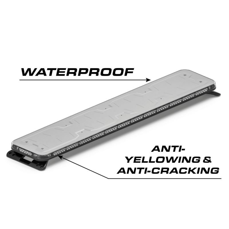 Single-color lightbars for emergency warning use. User configurable in Red, Blue, Amber, White and Green, the Fusion-S line offers a 40° degree optic that is 60° brighter than the previous Fusion family.