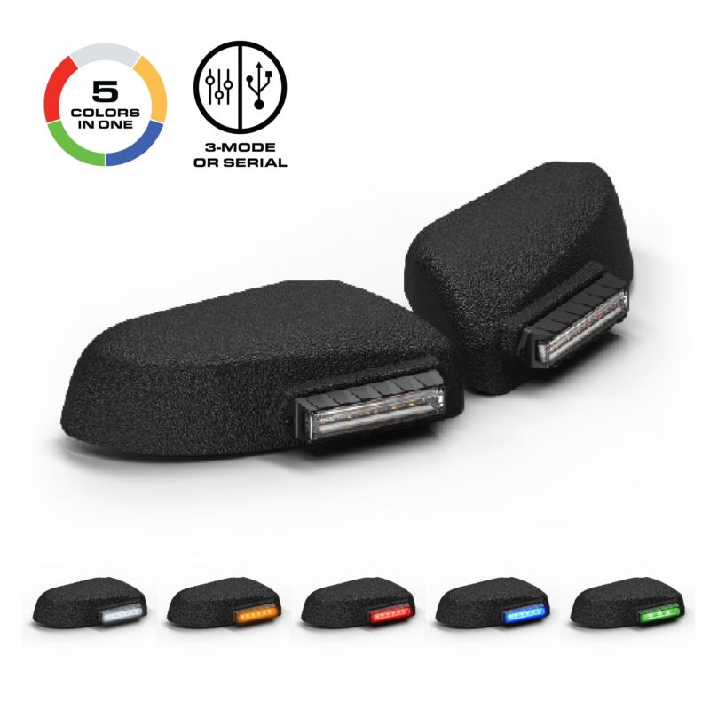 The Feniex Q® Series is the first 5-color perimeter lighting system capable of any combination of Blue, Red, Amber, White and Green Available in both 3-Mode and Serial configurations, the Q® Mirror Mount provides unmatched versatility for emergency, utility and specialty vehicle applications. The 3-Mode version integrates with any 12V switch or controller, while the Serial version connects to the Q-Link device for advanced programming and synchronization. Built with 60°degree optics, rugged vehicle'specific housings and exceptional brightness, the Q® Mirror Mount ensures maximum visibility in demanding environments.