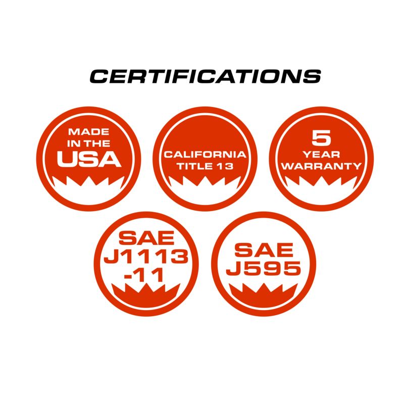 - Fourteen flash patterns including brake, tail and steady on