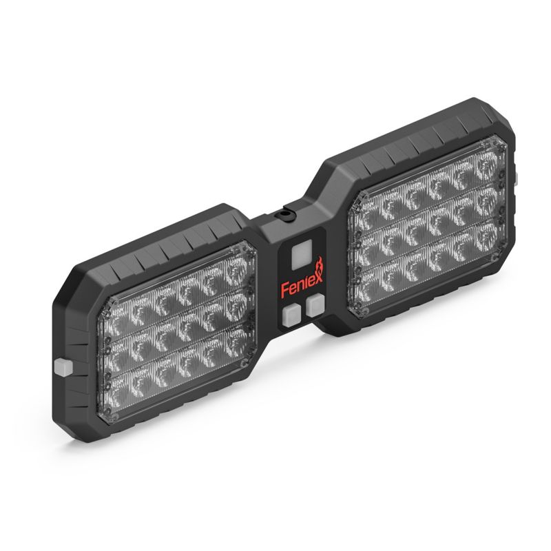The Feniex Interior Visor Light is a compact, flip-down interior warning light designed for discreet, high-performance functionality. Featuring 40 high-poweRed LEDs across two light heads, it straps directly to the vehicle's sun visor using pre-installed hook-and-loop fasteners. When deployed, it provides bright, widespread warning output and folds up for a low-profile, undercover setup when not in use. Available in seven color configurations, it is ideal for emergency response and Green applications. The unit includes 24 preprogrammed flash patterns with memory recall and onboard pattern selection buttons. Built for longevity with an estimated 100,000-hour lifespan, this light is a dependable, compact solution for interior vehicle warning needs.
