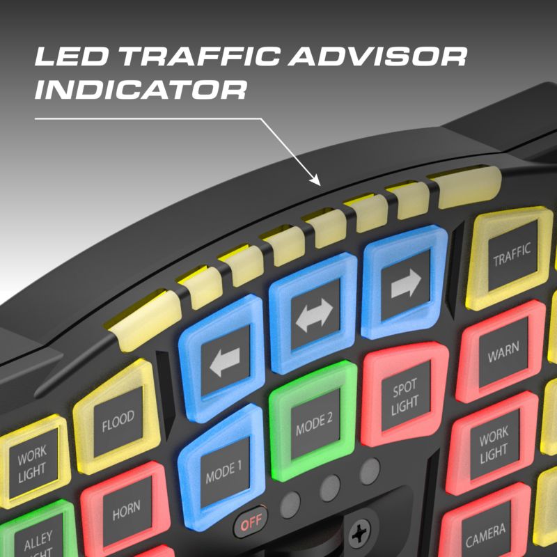 The SynQ-S is a full-size vehicle controller built for operators who need clear, direct access to their most important functions. Featuring 22 backlit buttons and an integrated slide switch, it provides fast, intuitive control with five selectable button colors for quick mode identification. The system powers on in just one second, giving users instant access to lighting, siren and auxiliary functions. A 200W dual-tone siren, 15+ programmable siren tones and 20+ audio commands are included through the paiRed SynQ Relay. EngineeRed for demanding fleets, the SynQ-S offers high-capacity current output control with 12 low-current outputs, 6 high-current outputs and 4 ground outputs, all PC programmable. With support for up to 96 Q Serial lightheads or 16 Quantum 2.0 devices, the SynQ-S delivers responsive performance, advanced configuration options and seamless syncing for emergency and specialty vehicles.