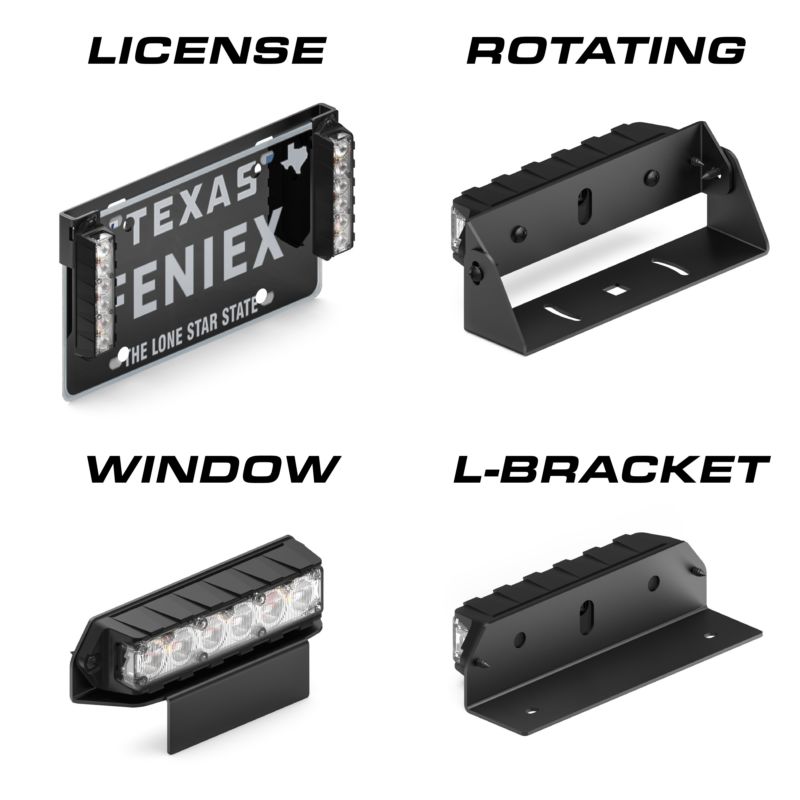 Brackets for the Q Series Surface Mounts and FSMs, unlocking nearly limitless mounting options from license plate mounts to hood mounts. The double bezel is built for two surface mounts.